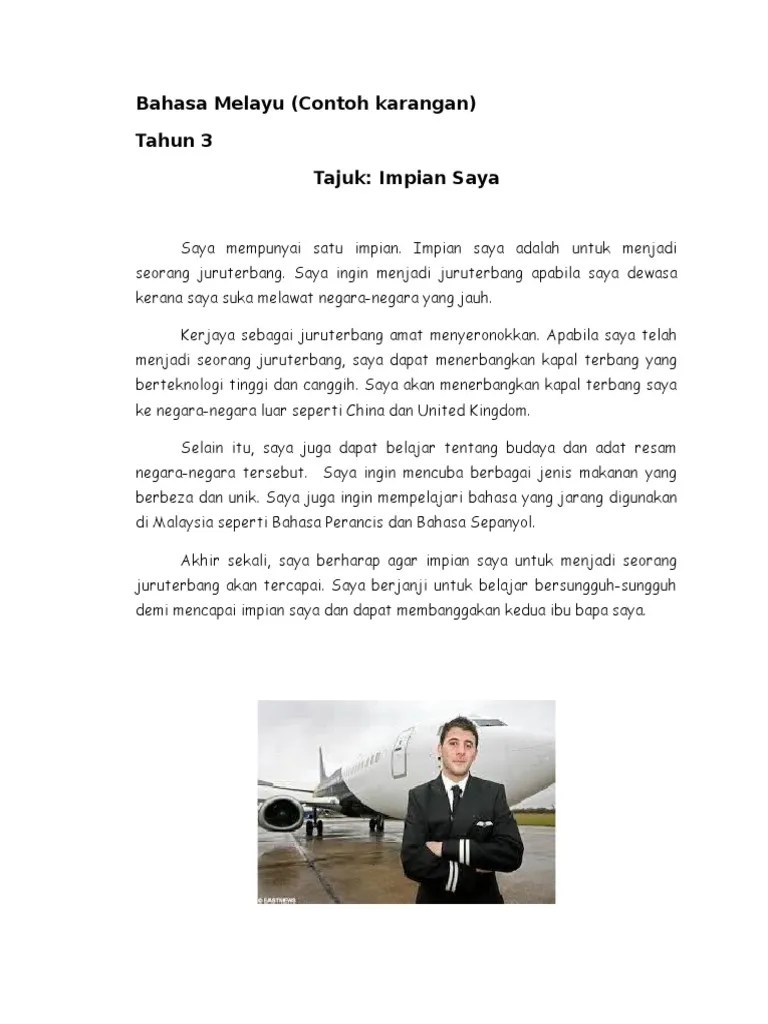 Saya berminat untuk menjadi juruterbang kerana perkerjaan ini . Ada yang ingin menjadi doktor, peguam, . By cikgu ayu dot my april 22 2019. Contoh karangan bahasa arab tentang cita cita menjadi guru teaching .